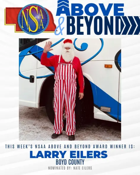 LINCOLN, NE — The Nebraska School Activities Association is proud to recognize Mr. Larry Eilers of Boyd County Public Schools as this week’s Above and Beyond Award nominee. For over 40 years, Larry has been a constant source of service, dedication, and heart in the Boyd County and Lynch communities. Whether driving a bus, fixing a boiler, volunteering as a fireman, or helping to build a new classroom, Larry has always been the person everyone could count on to get the job done—with quiet humility and deep pride in his school.