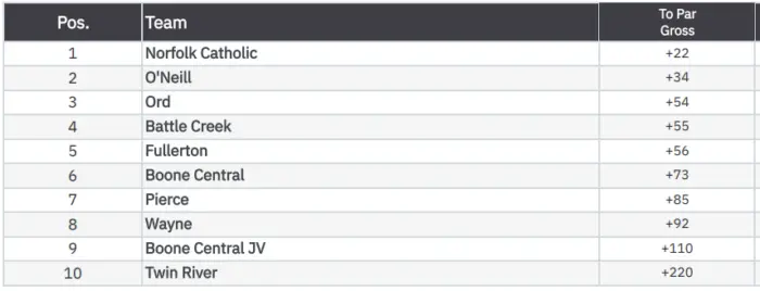 O’Neill finishes as runner-up from the Boone Central Boys Golf Invite, 12 strokes behind Norfolk Catholic and 20 strokes better than Ord!