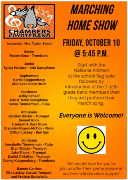 Chambers Coyote Band Marching Home Show & Free Will Donation Supper